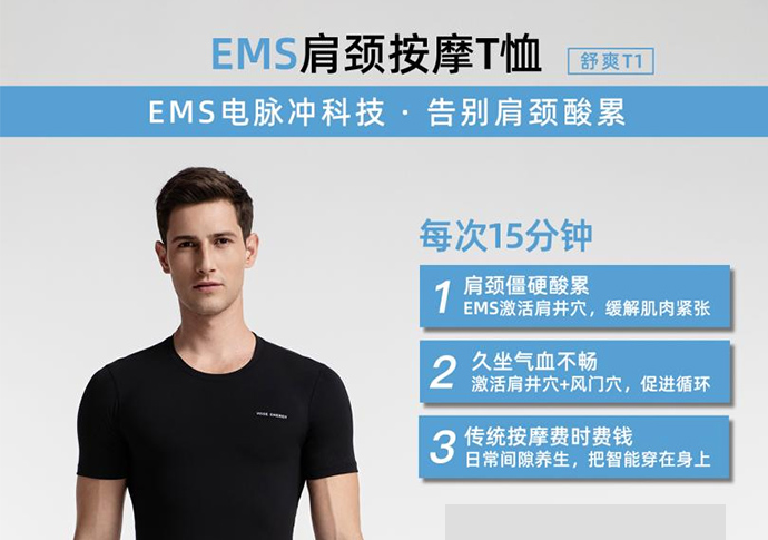 EMS肩颈按摩T恤舒爽T1——穿在身上的肩颈按摩师