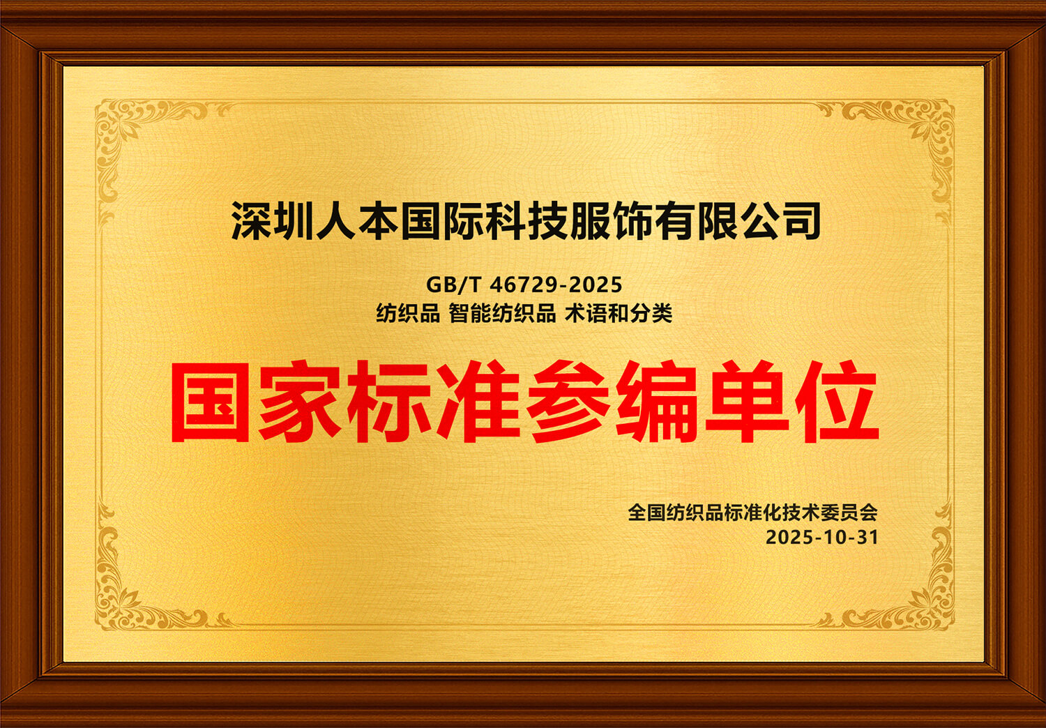 本次国标明确了智能纺织品的系统术语与功能分类,涵盖电子纺织、可穿戴、调温、发光等多类智能产品,为行业健康发展奠定规范基础。在与各顶尖单位合作的过程中,深圳人本国际持续深化在智能感知、柔性电路、温控响应等关键技术上的研发积累,致力于打造更贴合人体、更懂用户需求的智能服饰产品。